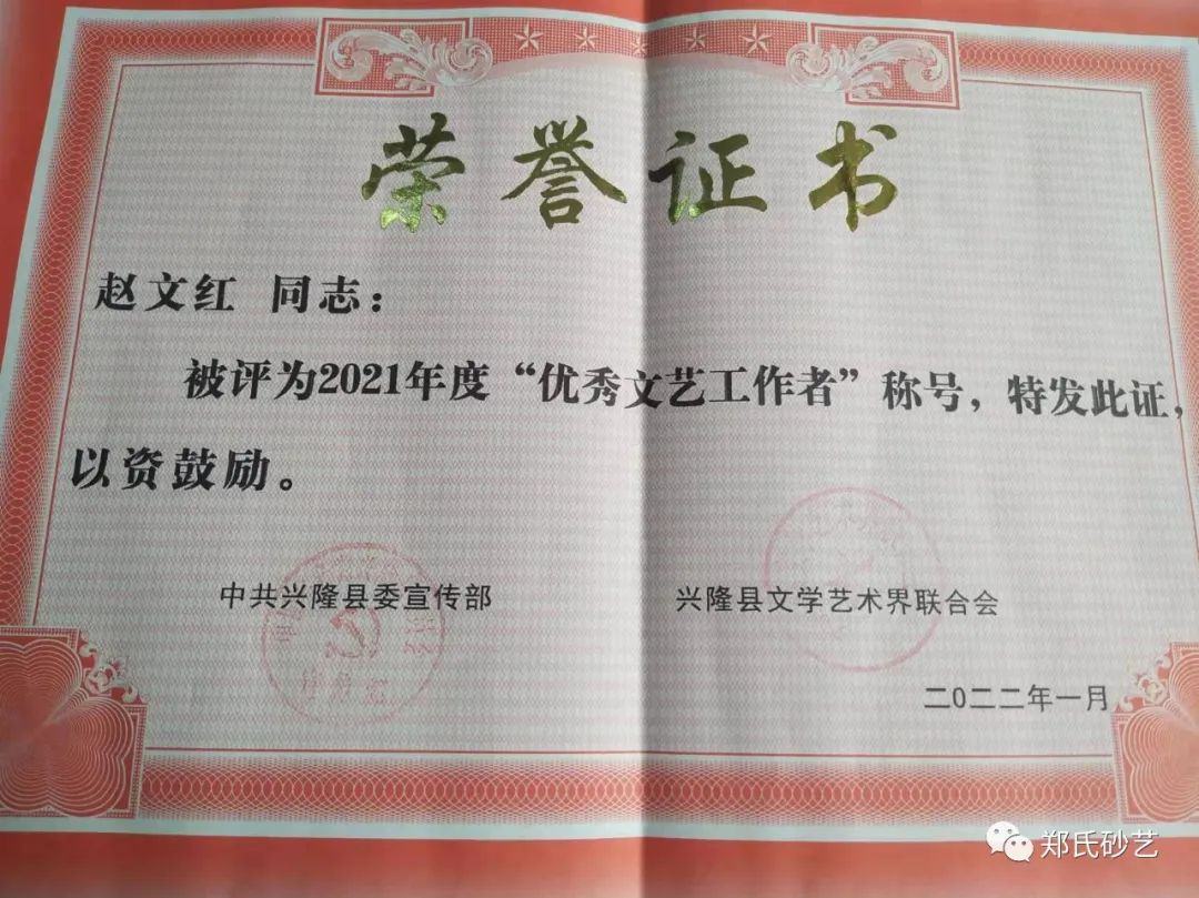近日,縣委宣傳部、縣文聯(lián)發(fā)表了《關(guān)于表彰2021年度優(yōu)秀文藝家協(xié)會(huì)、優(yōu)秀村級(jí)文聯(lián)、優(yōu)秀企業(yè)文聯(lián)、優(yōu)秀文藝工作者的決定》,文中指出“2021年,在縣委、縣政政府的堅(jiān)強(qiáng)領(lǐng)導(dǎo)下,在市文聯(lián)的直接指導(dǎo)下,全縣廣大文藝工作者,深入學(xué)習(xí)貫徹黨的十九大和習(xí)近平文藝座談會(huì)上的講話(huà)精神,在‘鄉(xiāng)村振興黨旗紅·文藝創(chuàng)新樹(shù)先鋒’和‘文藝名村’建設(shè)實(shí)踐活動(dòng)中,辛勤耕耘,積極創(chuàng)作,服務(wù)人民,為繁榮全縣文藝事業(yè)做出了積極貢獻(xiàn),涌現(xiàn)出了一大批表現(xiàn)突出、成績(jī)優(yōu)異的文藝工作者。”在此次通報(bào)表彰中,鄭氏砂藝董事長(zhǎng)鄭鐵軍、徐書(shū)英、王鳳艷、趙文紅、張國(guó)新、王建寶、張玉紅、張秀榮、王婷共9人被縣委宣傳部和縣文聯(lián)授予2021年度“優(yōu)秀文藝工作者”稱(chēng)號(hào)。企業(yè)將繼續(xù)開(kāi)拓創(chuàng)新,潛心創(chuàng)作,努力發(fā)掘出更多文藝人才,壯大鄭氏砂藝藝術(shù)研究所,創(chuàng)作出更多文藝精品,為推進(jìn)新時(shí)代興隆縣文藝事業(yè)繁榮發(fā)展作出新的更大貢獻(xiàn)。