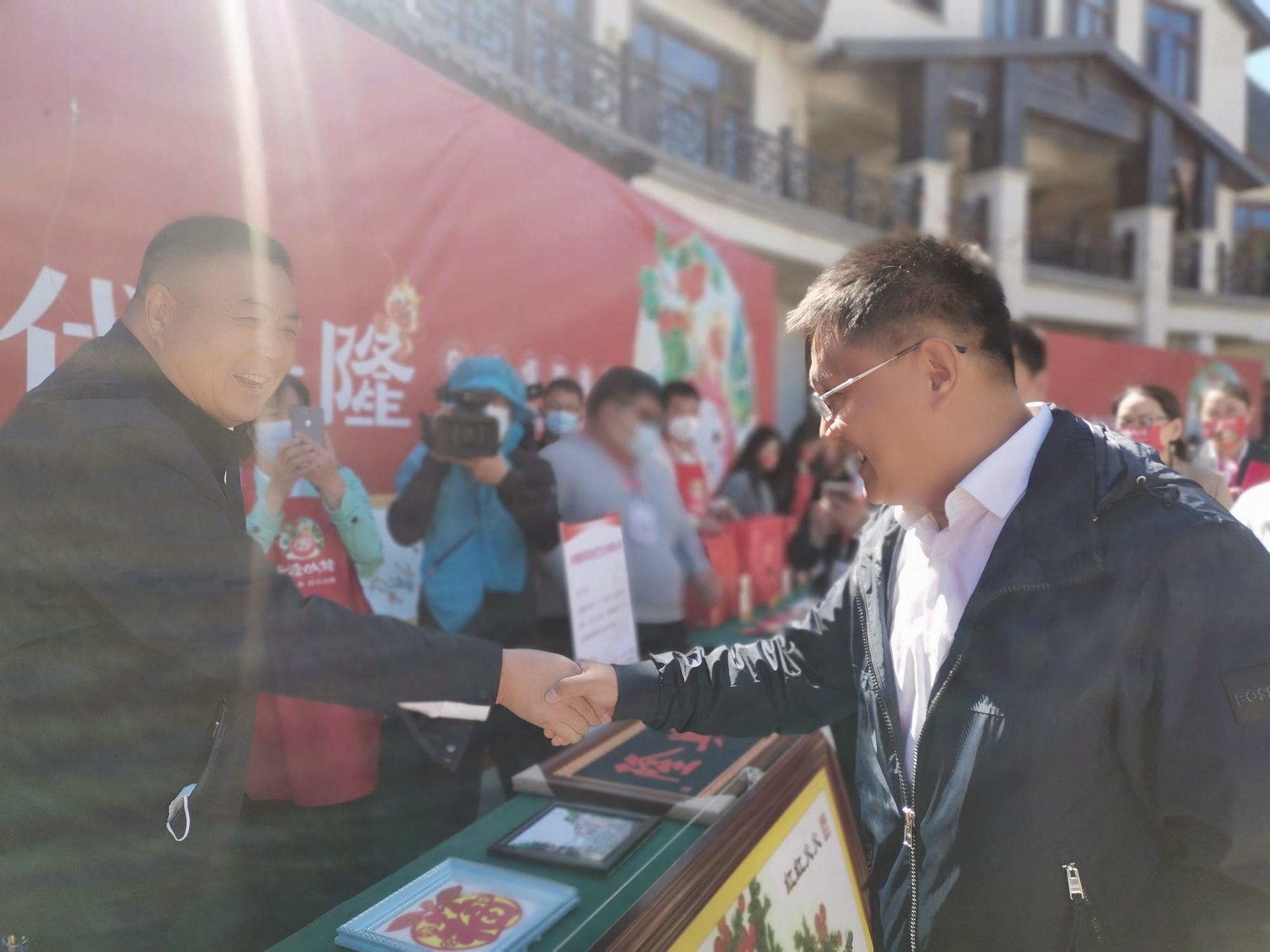 在此次山楂節(jié)上,鄭氏砂藝展出了《興隆山楂節(jié)》、《霧靈紅》、《山里紅》、《興隆山楂》等數(shù)十幅非遺砂畫作品,用獨特的藝術(shù)方式展現(xiàn)了我縣山楂豐收的盛況,為興隆縣第五屆山楂節(jié)獻上了一份另類的藝術(shù)“厚禮”。市委副書記郭旭濤等一行領(lǐng)導(dǎo)相繼駐足觀看砂畫作品,并同鄭氏砂藝董事長鄭鐵軍進行親切交談,郭旭濤書記對鄭氏砂藝非遺文化傳承和保護工作給予了充分肯定和贊揚。鄭氏砂藝的展出既體現(xiàn)了承德對提升“非遺”文化軟實力的重視,又反映出承德地區(qū)民族文化自信的提升,砂藝人也會用藝術(shù)講好承德故事,傳播好承德聲音。
